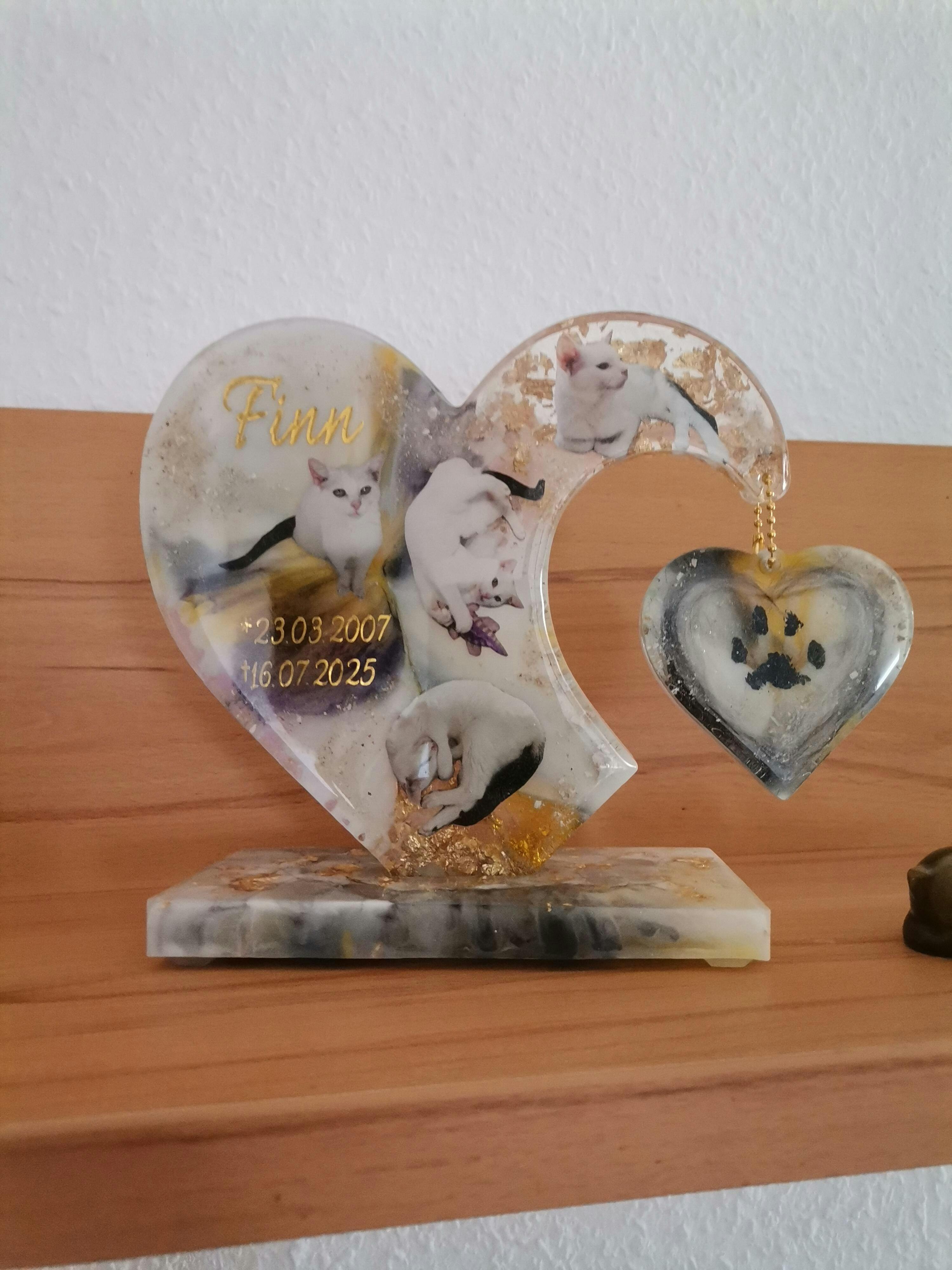 Das Herz ist sehr schön geworden. Live sieht es nochmal viel besser aus, als in den Videos. Ich bin dir sehr dankbar für dieses tolle Erinnerungsstück. So hab ich meinen Finn wieder etwas bei mir